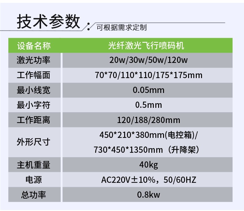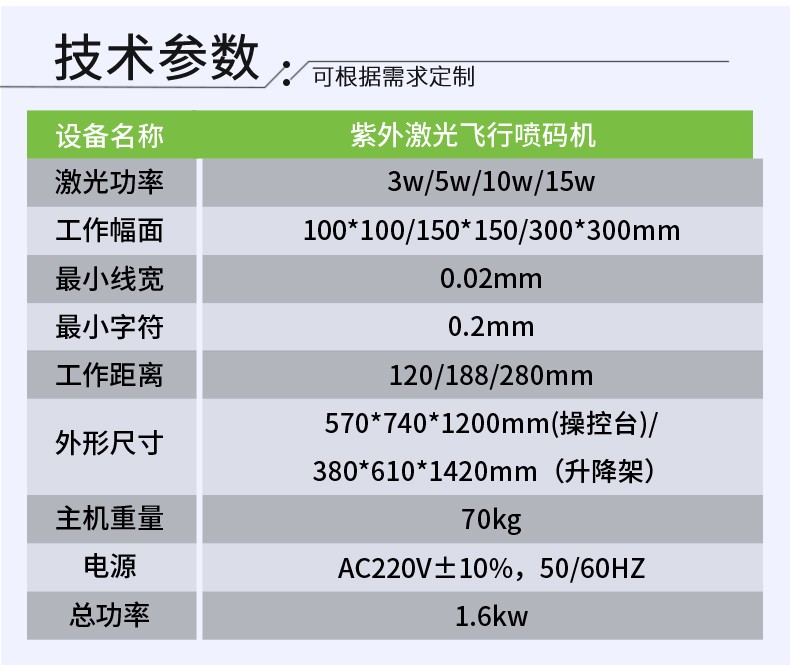 輕松適應不同生產(chǎn)線需求;支持超長打標和二維碼飛行打標;支持自動生成日期碼、時間碼、序列號等,廣泛應用在煙草、瓶蓋、飲料瓶、電器外殼、鋁合金、食品袋、包裝盒、紙盒、醫(yī)藥、化妝品等行業(yè);