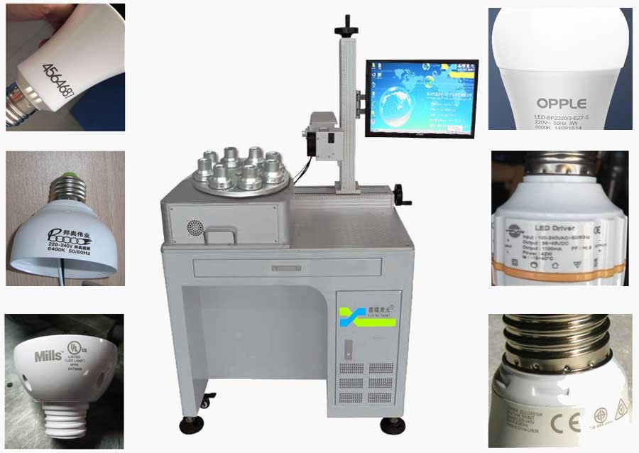 鑫鐳激光八工位激光打標機是為我們客戶專業定做的一款針對節能燈打標的激光設備,此款設備對比普通的激光打標機,多了個八工位旋轉盤以及XY軸,旋轉盤的作用是為了提供打標速率與精確度,上下料操作方便簡單,XY軸是為了針對不同大小的節能燈打標。
