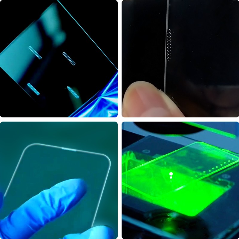 手機屏幕玻璃蓋板聽筒陣列孔激光打孔:玻璃聽筒是十分脆弱的,如果某點受力稍大點就會發生破碎,用傳統的玻璃打孔方式,效率低、圓度差、崩邊大、損耗率高;