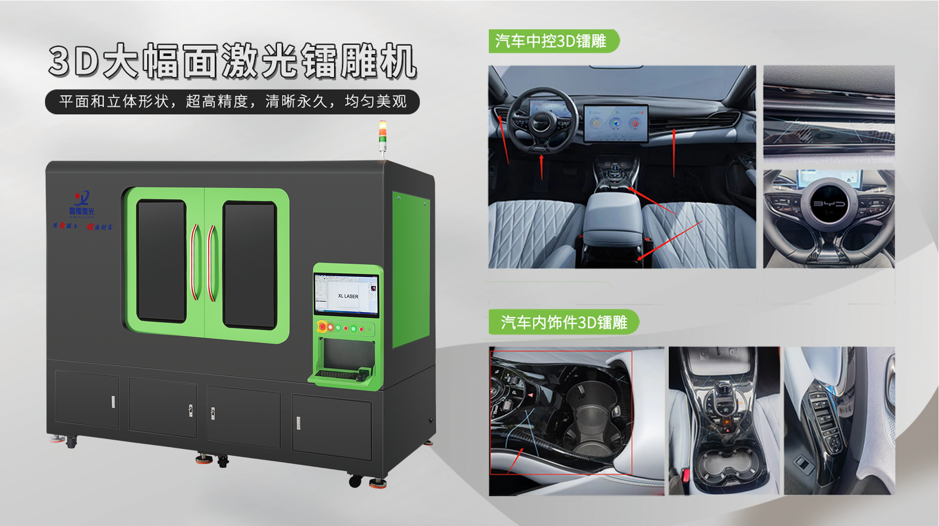 2022年,比亞迪與鑫鐳激光就汽車配件3D大幅面激光鐳雕項目展開合作,汽車中控面板、出風口面板、杯托面板、門板裝飾件、中央飾框、駕駛側面板大幅面鐳雕,圖案清晰永久,線條優美,色彩均勻,無拼接。