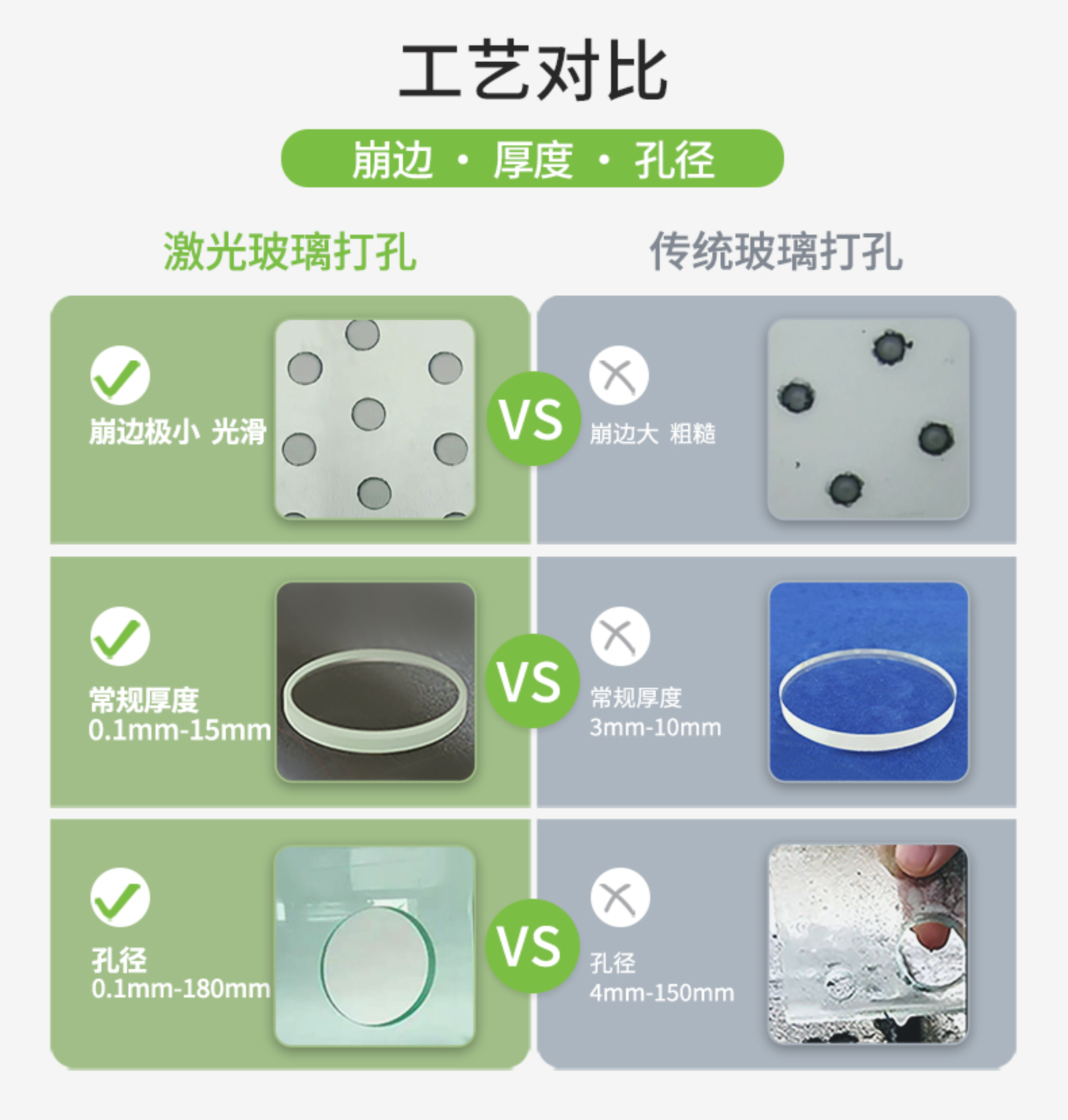在茶具茶漏玻璃、玻璃器皿容器、開關面板玻璃、家電玻璃、廚具玻璃、光學玻璃、儀器儀表玻璃等領域打孔效果優異。