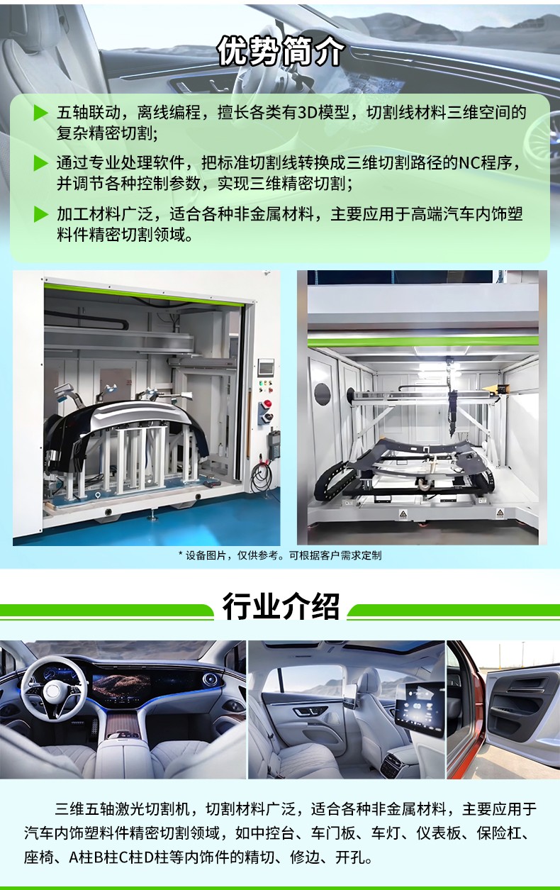 加工材料廣泛,適合各種非金屬材料,主要應用于高端汽車內飾塑料件精密切割領域。